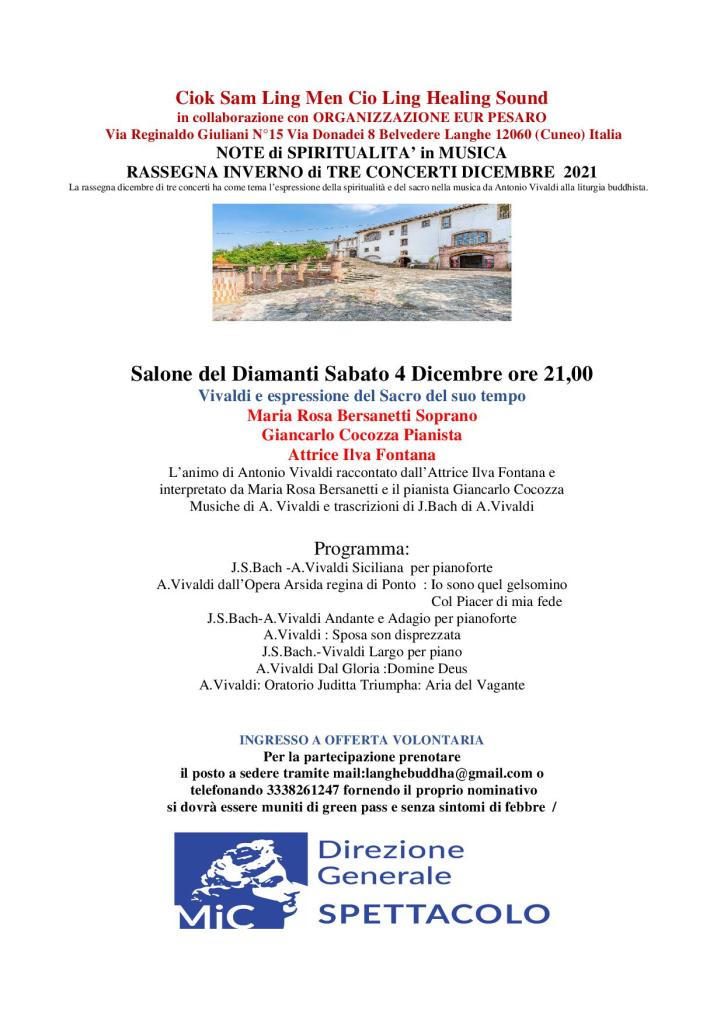 Antonio Vivaldi e il Suo Tempo Con la descrizione della Sua vita le opere le tascrizioni Bach-Vivaldi dall’estro armonico per Pianoforte e l’interpretazione delle Sue arie d’opera e delle arie sacreConcerto di Natale ispirato alle arie del 700 e ai canti Natalizzi popolariRecital Bersanetti-Cocozza